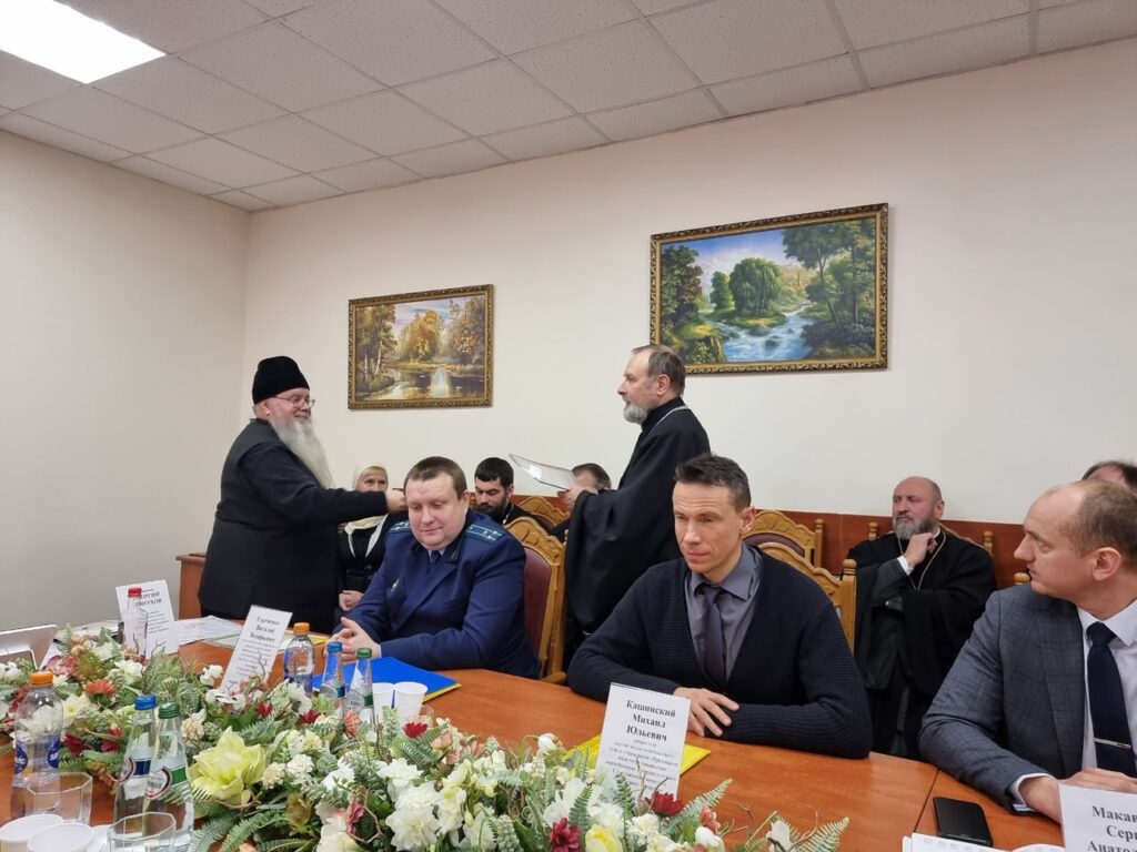 Заседание началось с общей молитвы после чего с приветственным словом выступил полковник Мандрик В.А.. В своем слове он указал на значительные успехи тюремного священства в деле оказания помощи Департаменту в духовно-нравственном воспитании спецконтингента.