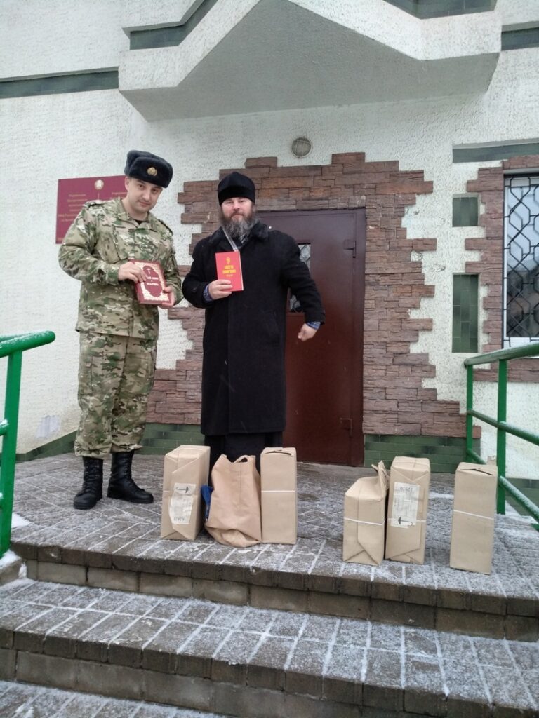 Входе встречи в помещениях для содержания арестованных священник Сергий раздал Евангелие и другие памятные подарки.