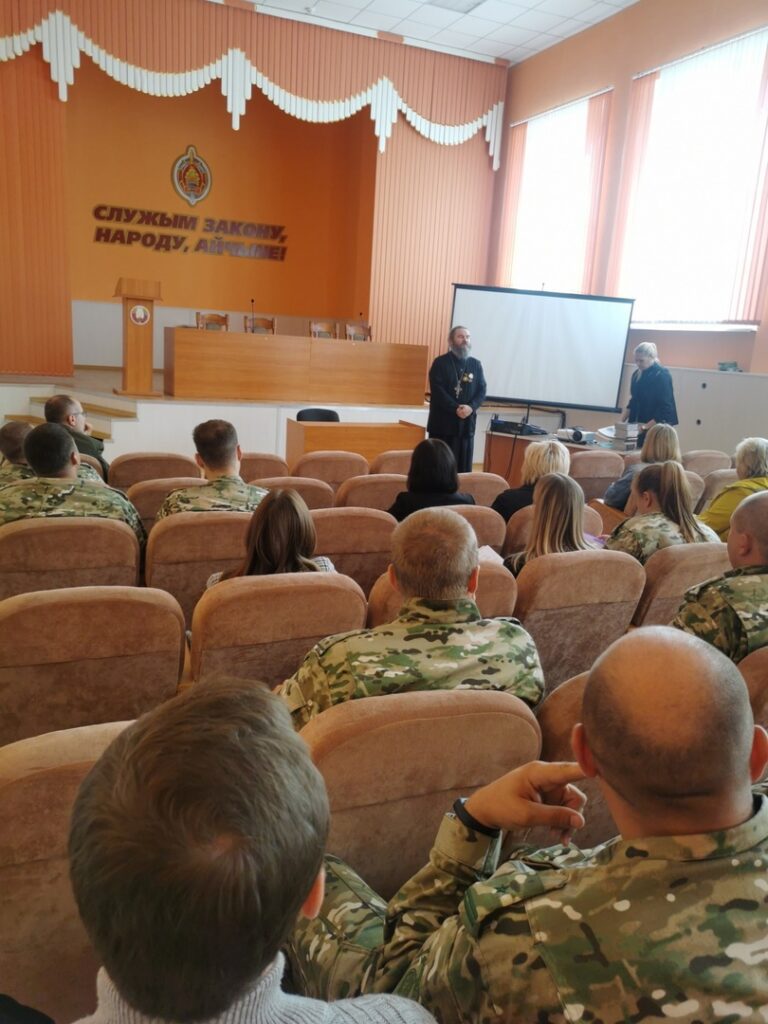 В праздник Рождества Пресвятой Богородицы ст. тюремный священник Витебской епархии прот. Сергий Захаров встретился с личным составом ДИН по Витебской области, рассказал о важности этого события и подарил епархиальные газеты и другую литературу.