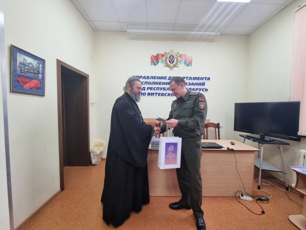 Старший тюремный священник Витебской епархии протоиерей Сергий Захаров встретился с сотрудниками Управление Департамента по Витебской области, поздравил всех с предстоящим праздником Рождества Христова и вручил подарки.