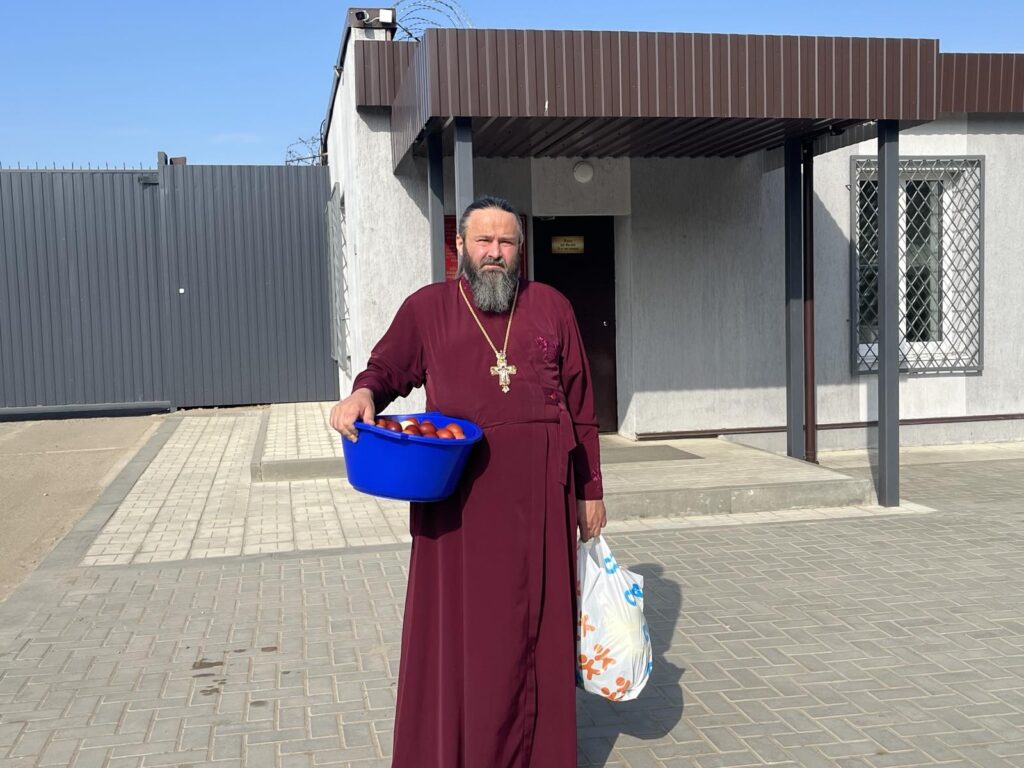 Священник поздравил подопечных с праздником Пасхи Христовой освятил трапезу, раздал куличи и иконки.