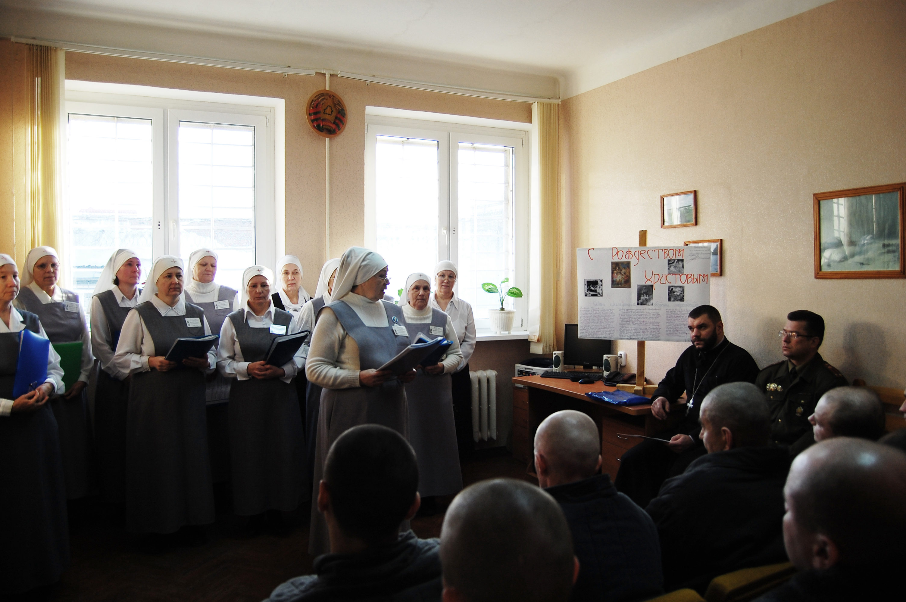 В начале встречи священник ознакомил осужденных с Рождественским посланием Преосвященнейшего Иоанна, епископа Брестского и Кобринского и произнес пастырское наставление. Сестры милосердия исполнили колядные песнопения.